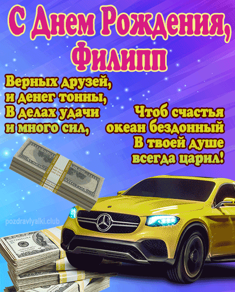 Сообщение с именной открыткой искренне обрадует Филиппа, который умеет восхищаться всем, что его окружает. Выбирайте открытку и скорее отправляйте ваше теплое поздравление!
